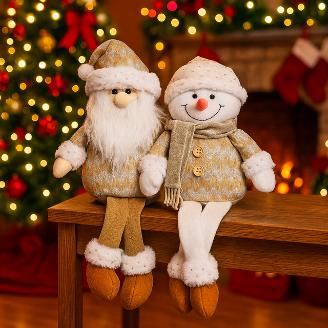 Esse Papai Noel e o Boneco de Neve sentadinho traz aconchego e charme, com acabamento macio e detalhes delicados. Ideal para colocar em aparadores, racks, mesas ou prateleiras.