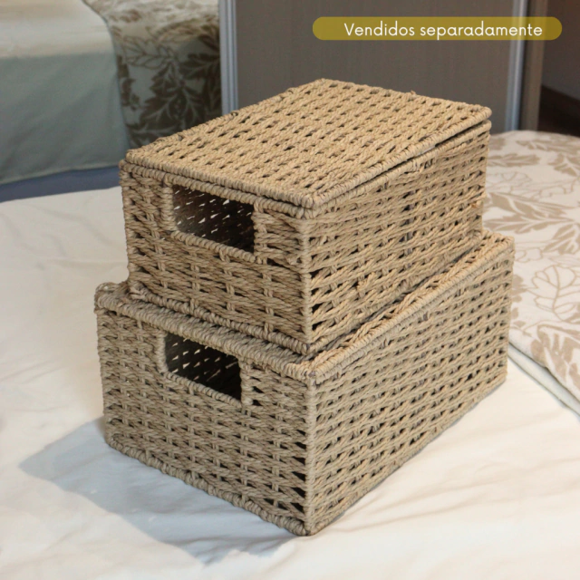 O Cesto Retangular Com Tampa De Fibra Natural é um verdadeiro elemento que se destaca em qualquer espaço, seja em sua casa, escritório ou loja. O grande diferencial desse cesto é a sua versatilidade, pois é perfeito para armazenar e organizar uma variedade de itens, além de ser um charme.