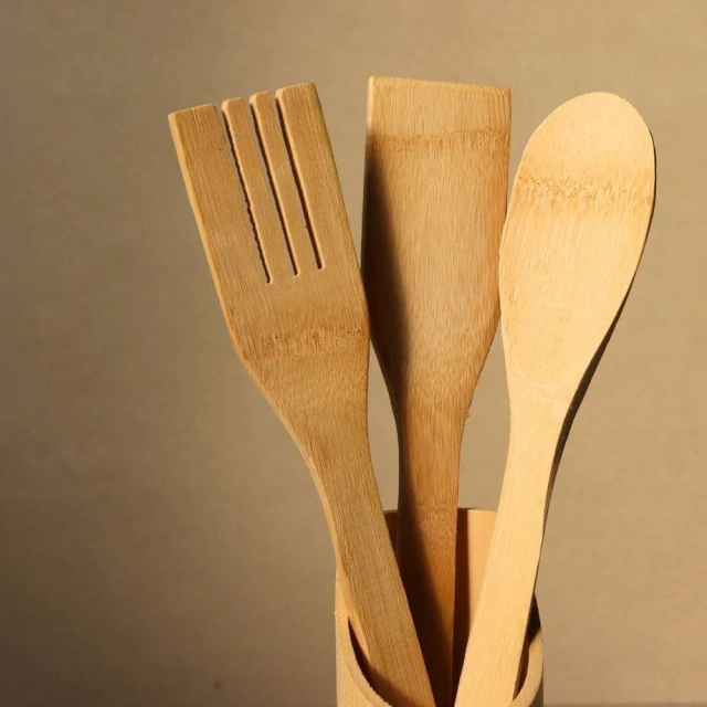 Kit Utensílios Com Suporte De Bambu Com 5 Peças