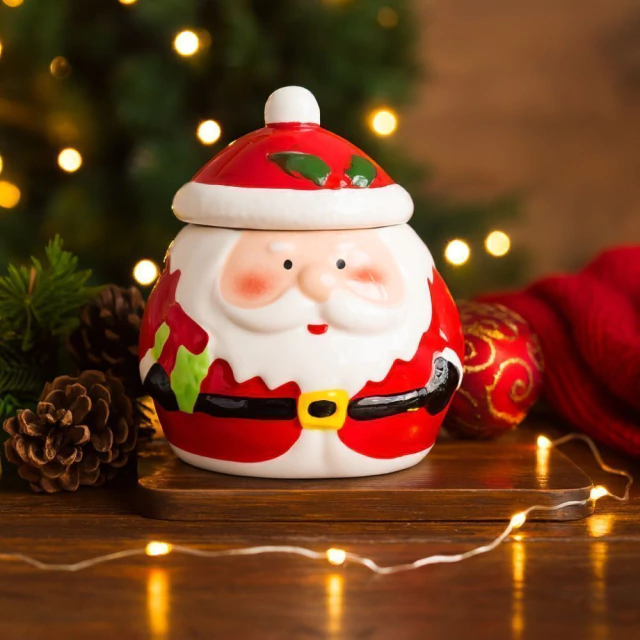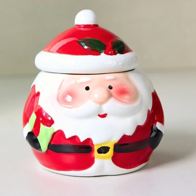 Encante sua mesa ou aparador com esse adorável Papai Noel em cerâmica com tampa!