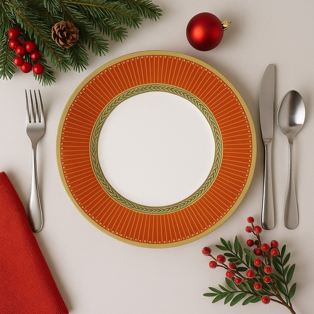 Traga o charme e a sofisticação do Natal para sua mesa! Esse prato combina o verde clássico com detalhes dourados delicados, criando uma composição moderna e acolhedora. Ideal para quem busca decoração moderna, acessível e cheia de estilo, deixando a ceia inesquecível sem gastar muito.